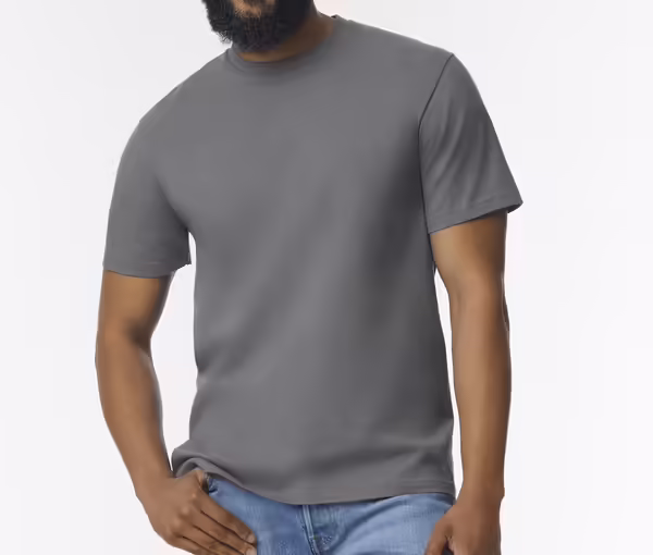 Klassischer, moderner Schnitt. T-Shirt mit röhrenförmigem Schnitt. Kragen aus schmalen Rippbündchen. Abnehmbares Etikett, im Übergang zu recyceltem abnehmbarem Etikett. Glatte Oberfläche. Better Cotton™-Baumwolle, Gildan unterstützt die Produktion von nachhaltiger und ethisch vertretbarer Baumwolle. Sauberkeitsband am Kragen und an den Schultern.